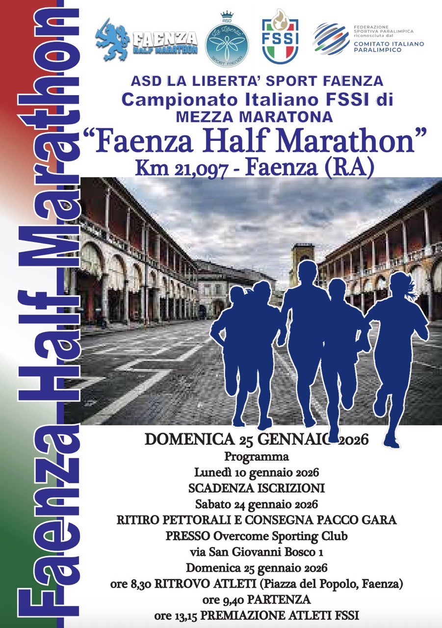 Faenza (RA) FaenzaLa manifestazione, denominata Campionato Italiano FSSI di mezza Maratona 21,097 Km “2° EDIZIONE FAENZA HALF MARATHON” organizzata dall’ ASD LA LIBERTA’ SPORT FAENZA sotto l’egida della Federazione Sport Sordi Italia […]