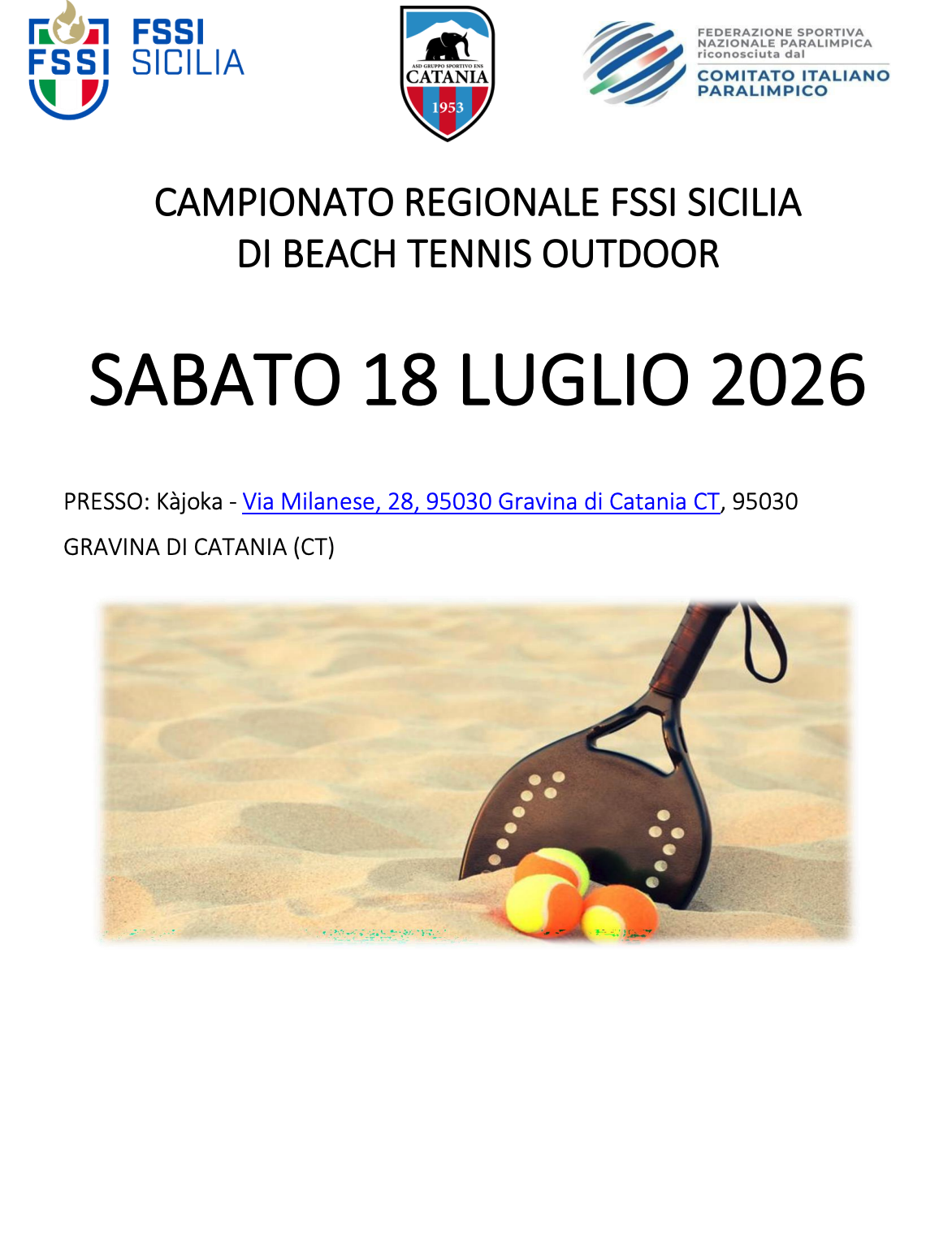 Programma Campionato Regionale Sicilia Beach Tennis Outdoor 2026