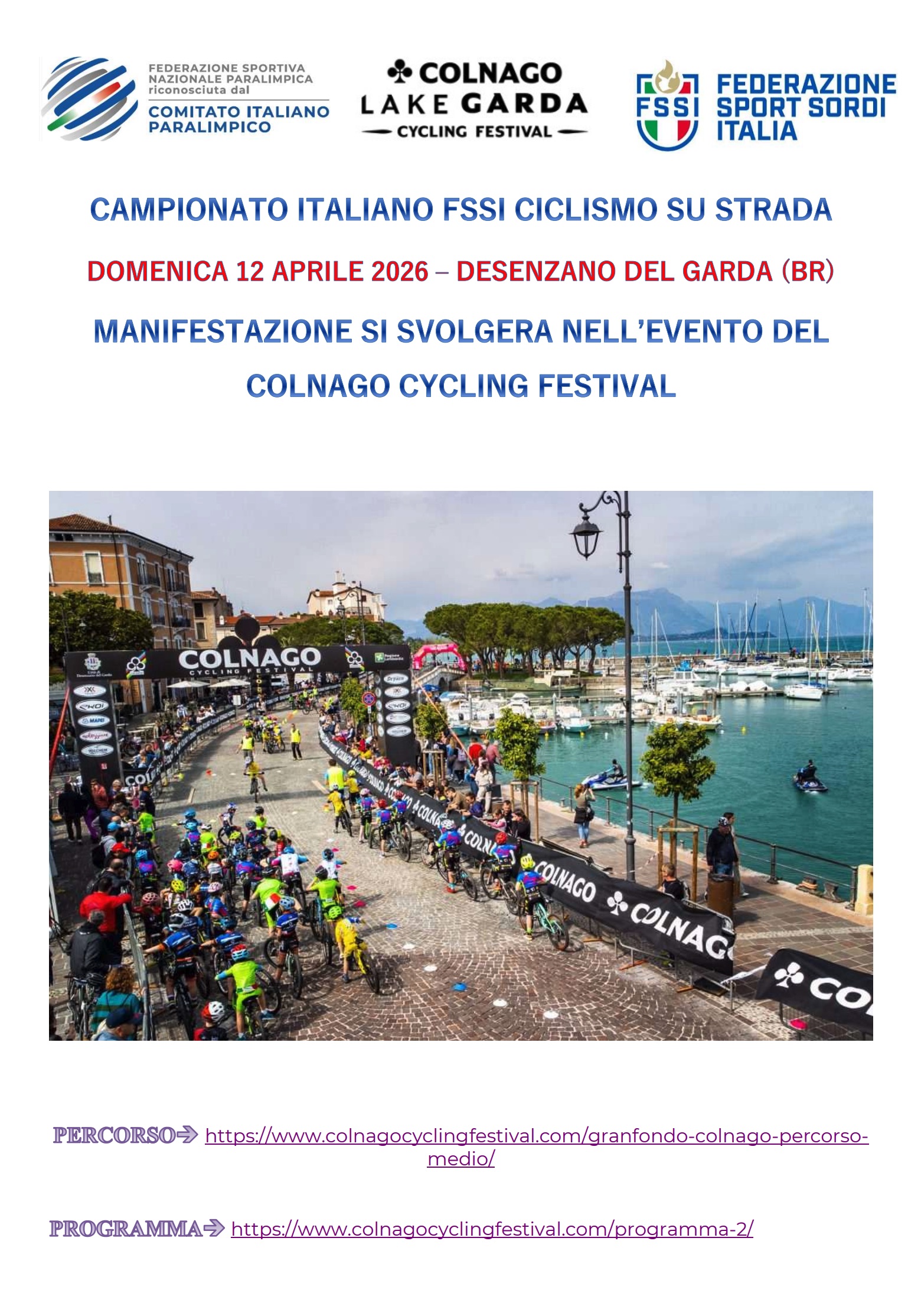 Desenzano del Garda Desenzano del Garda, ItaliaProgramma Campionato Italiano Ciclismo su strada in linea 2026