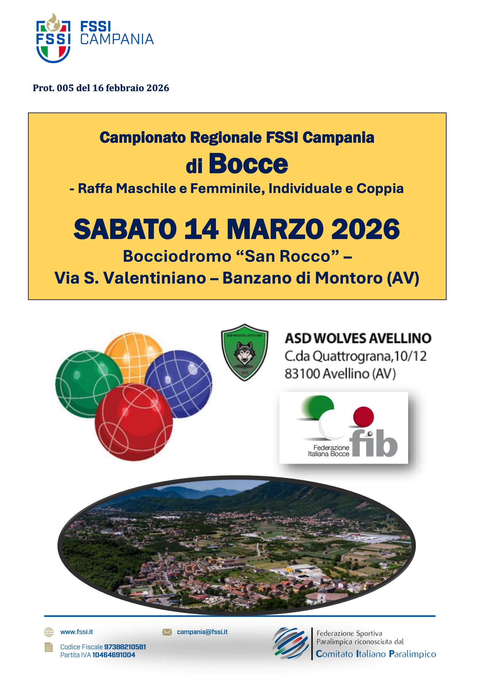 Banzano di Montoro Banzano di Montoro, ItaliaVi comunichiamo che L’ASD Wolves Avellino organizza il Campionato Regionale FSSI di Bocce -specialità Raffa Maschile e Femminile, Individuale e Coppia, in collaborazione con il Delegato Regionale FSSI Campania, il […]
