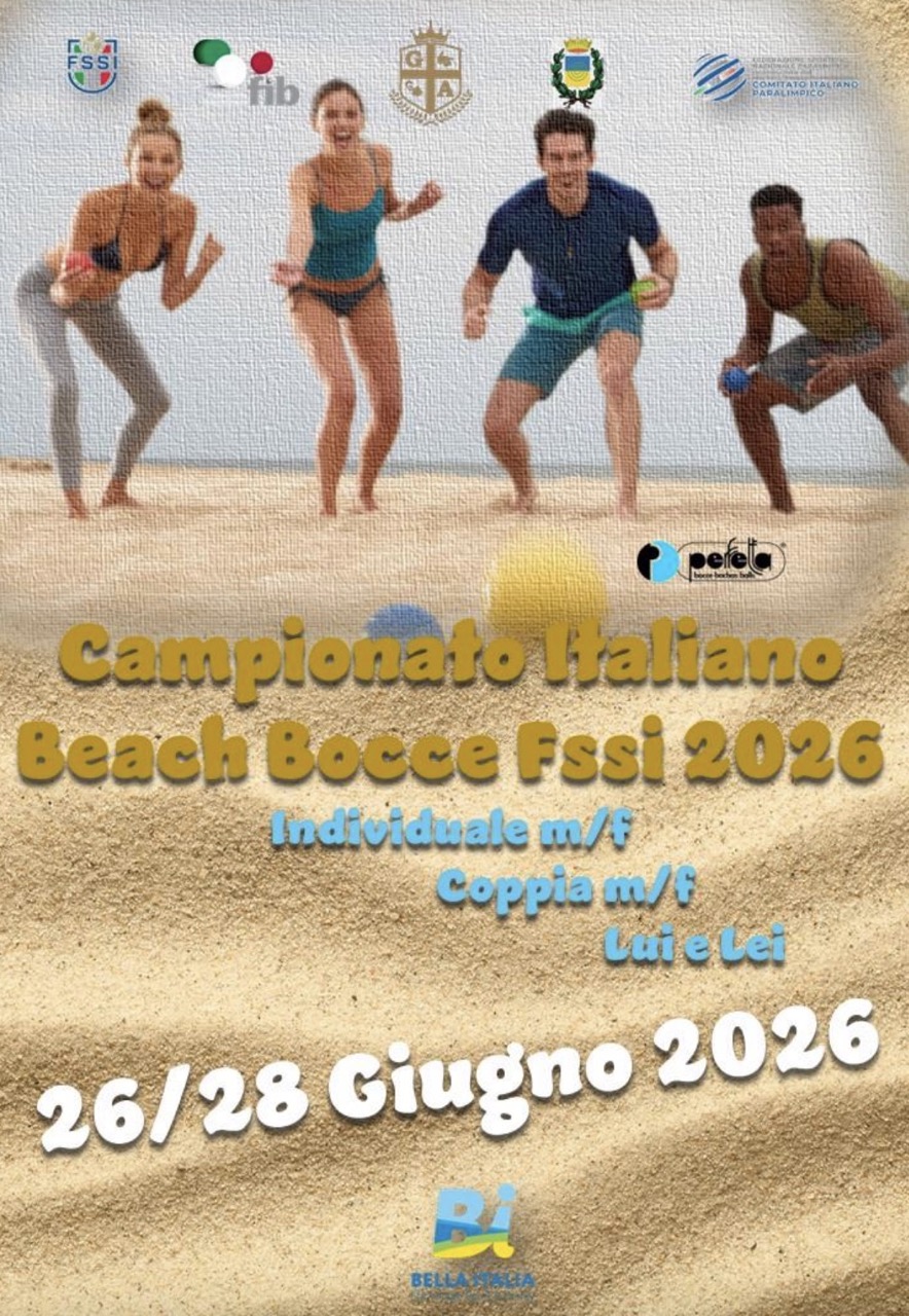 Lignano Sabbiadoro Lignano SabbiadoroLa società ASD GSS ALBA organizza il Campionato Italiano FSSI Beach Bocce nei giorni 26-27-28 giugno 2026 con la collaborazione della FSSI e con la FIB sulla spiaggia del Villaggio […]