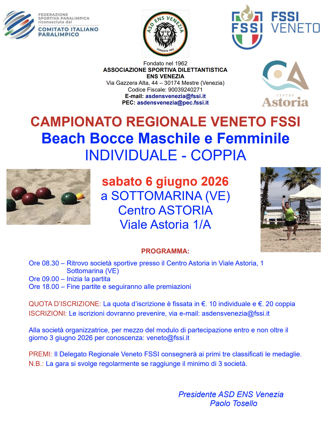 Sottomarina (VE) Sottomarina Chioggia (VE), ItaliaProgramma Campionato Regionale Veneto Beach Bocce 2026
