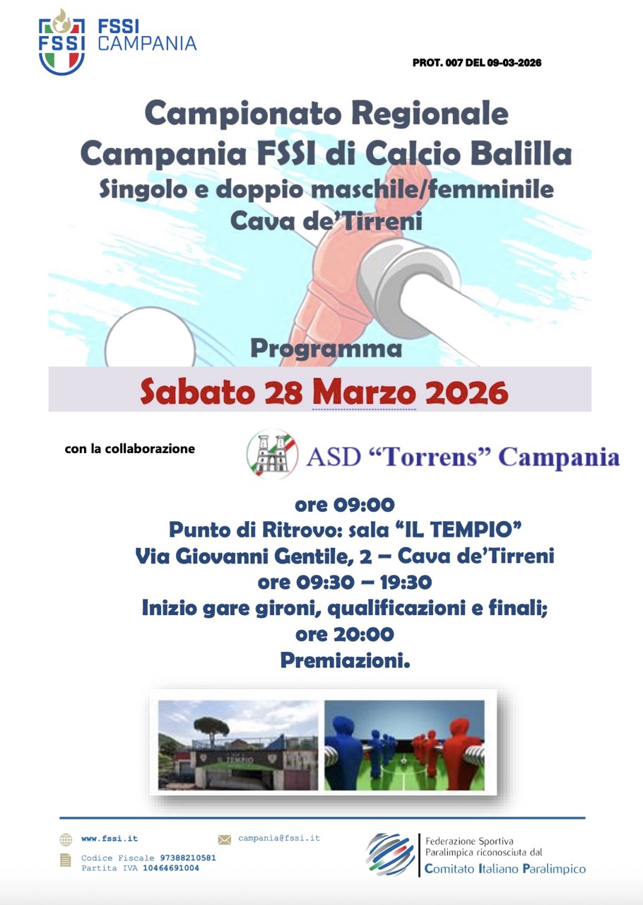 Cava de' Tirreni Cava de' Tirreni, ItaliaProgramma Campionato Regionale Campania Calcio Balilla 2026