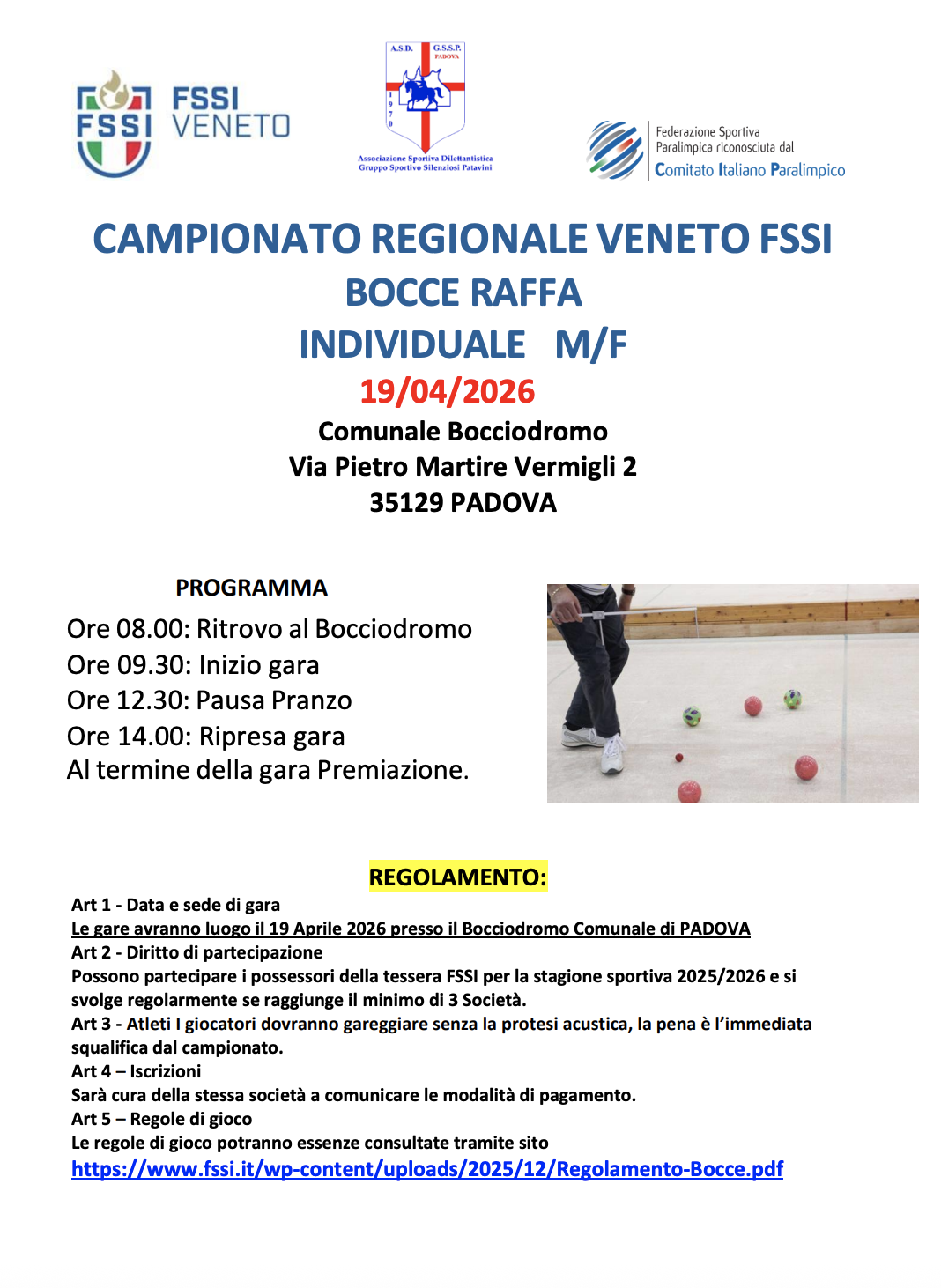 Padova Padova, ItaliaProgramma Campionato Regionale Veneto Bocce Raffa 2026