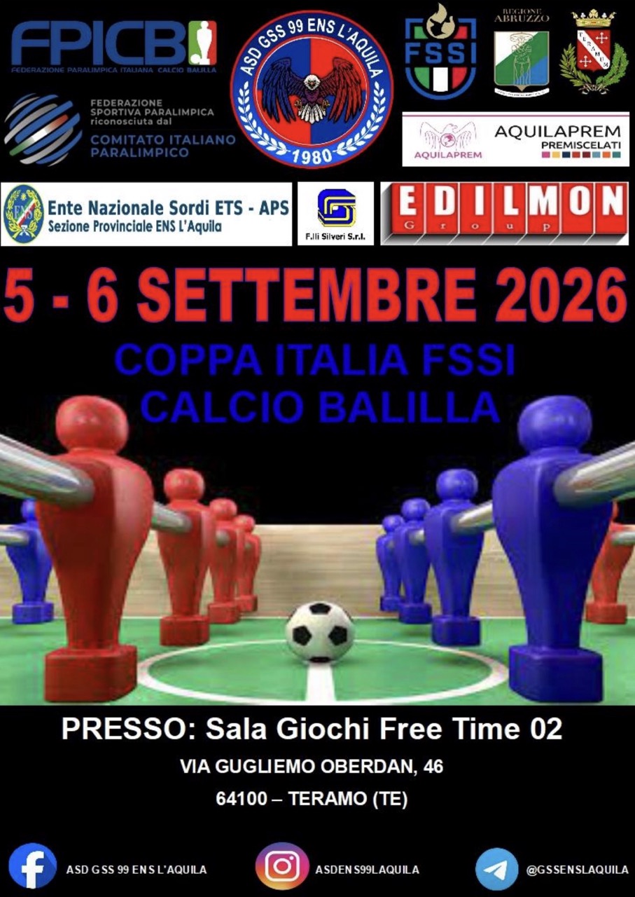 Teramo TeramoLa FSSI indice ed organizza con la collaborazione dell’ ASD GSS 99 ENS L'Aquila e con l’assistenza tecnica della FIPCB per i giorni 5 - 6 settembre 2026 presso Sala […]