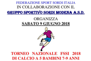 La società GSS Modena ASD in collaborazione con la FSSI organizza il giorno 9 Giugno il Torneo Nazionale FSSI di Calcio A5 per i bambini di 7-9 anni