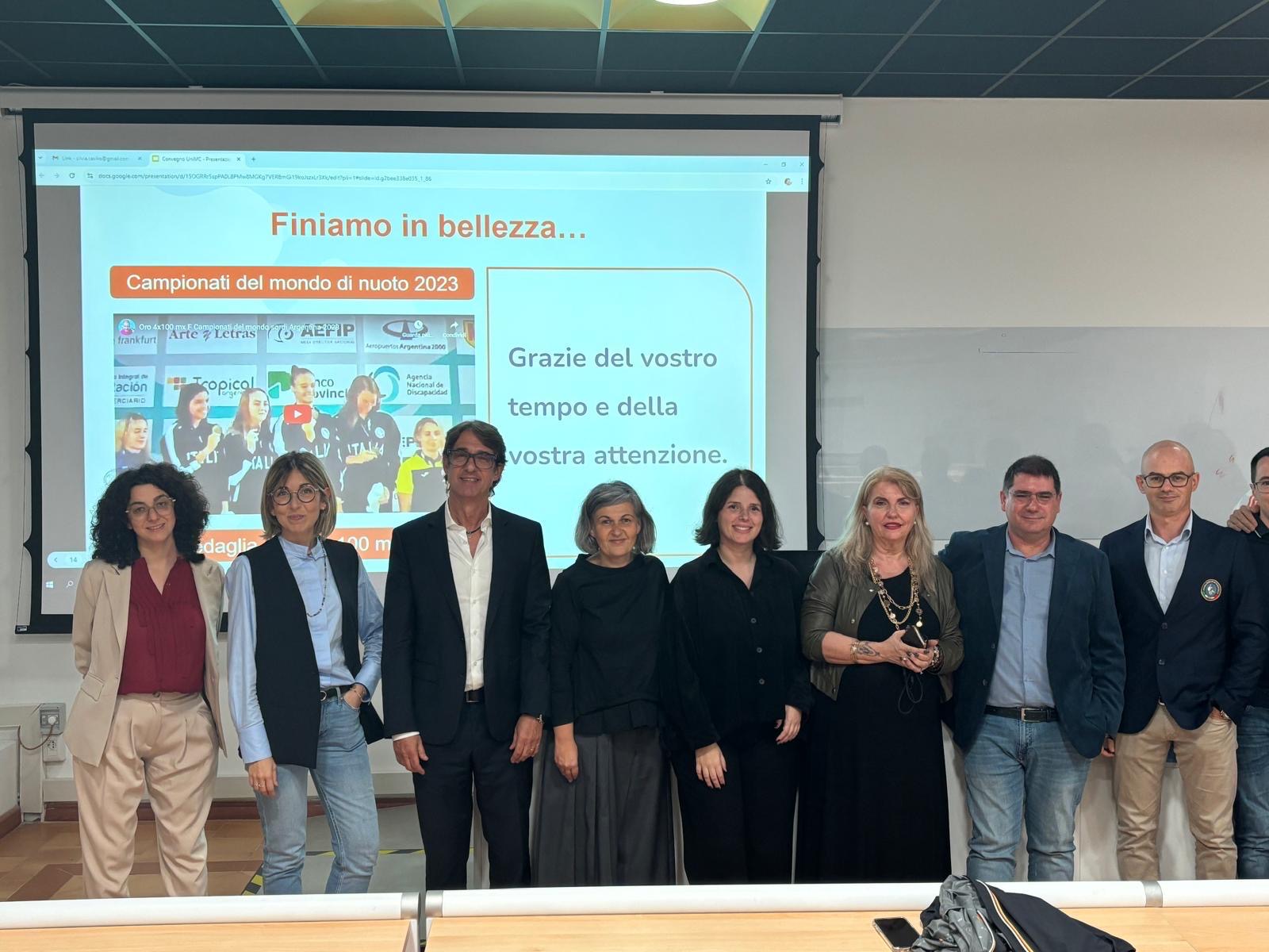 Per la FSSI, erano presenti il Consigliere Nazionale delegato al nuoto Franco Pallocchini e la delegata regionale Fssi Eleonora Scarsciotti, a testimonianza dell’impegno della Federazione nel promuovere lo sport dei sordi non solo sul terreno di gioco, ma anche nelle aule delle scuole e delle università.