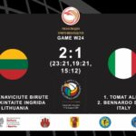 In mattinata la coppia femminile azzurra (Tomat/Bennardo), ha sfidato la Lituania per il passaggio alla semifinale, ma purtroppo dopo una partita molto tirata, punto a punto, non sono riuscite a sconfiggerle. Finisce 2-1 per le lituane (21/23 21/19 12/15). “Sono una coppia esperta, sempre in zona medaglia – sottolinea il vice presidente Pignataro -, ma potevamo vincere, le nostre non erano nella giornata migliore, peccato”. Contemporaneamente, sull’altro campo, si giocava la sfida maschile (Aquilani/Musacchio) contro la favoritissima Ucraina: “Sempre una lotta durissima, primo set a loro vantaggio, poi i nostri ragazzi hanno ribaltato la partita vincendo 2-1 con grande cuore e grinta” commenta il dirigente della Fssi.